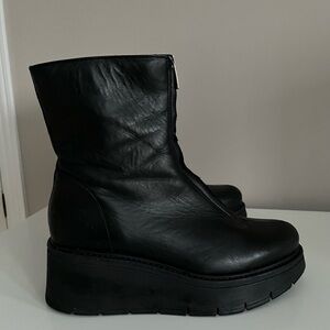 Handmade in Canada using waterproof Italian leather, these ankle booties feature a bold front zipper fastening and rubber platform wedge sole. A breathable microfiber lining and cushioned memory foam insole keeps you comfortable whether indoors or outside.