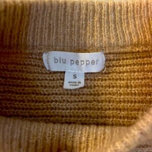 Cozy Cabin Crew Neckline Long Sleeves Soft, Knit Fabrication Size Small Black and nude color blocking is featured on the Two Roads Diverged Colorblock Knit Sweater.