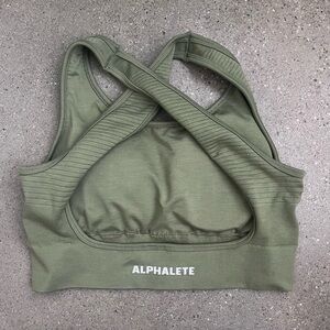 Excellent condition Alphalete Revival Vault Sports Bra in green. Stock photo included in a different colour to show fit and style.