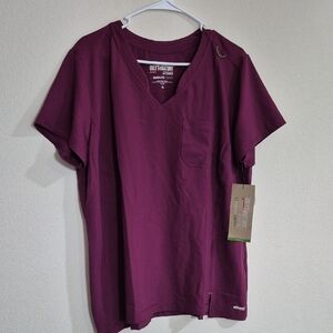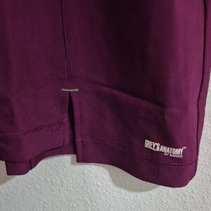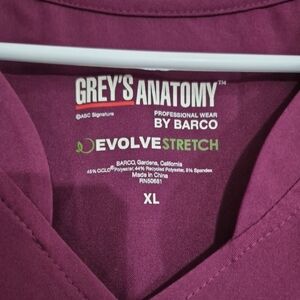 Comfortable Grey's Anatomy scrub top and bottom pants in maroon. Made with Evolve Stretch fabric.