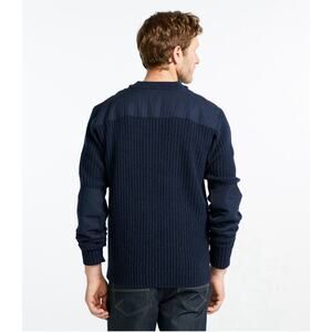 LL Bean Sweater Blue Commando Merino Wool Mens Size Large Henley. Has elbow & shoulder patches.