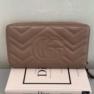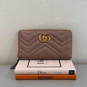 Gucci Beige Marmont Wallet with Gold Logo
