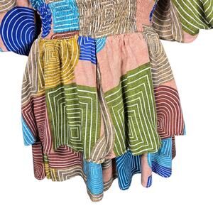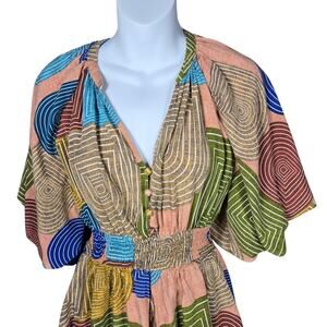 Entro Womens Small Geometric Romper Multicolor Boho Kimono Sleeve