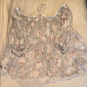 Zimmermann Floral Off-Shoulder Blouse - Gray and Pink 100% Silk