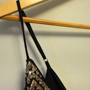 • Black with gold sequin and beaded design
