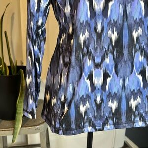 Talbots Long Sleeve Top with Blue and Black Pattern HALF ZIP PULLOVER