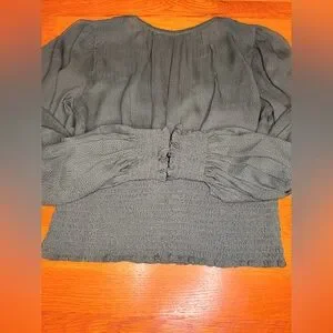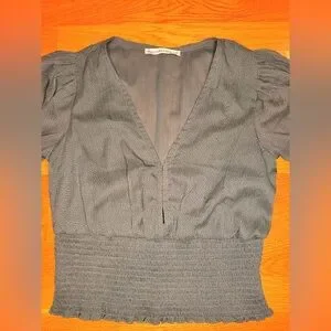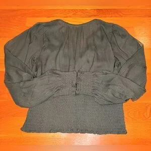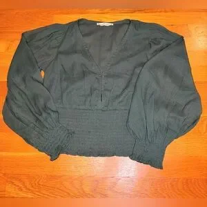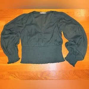 Abercrombie & Fitch Green Smocked Waist Blouse | Puff Sleeve V-Neck Top S