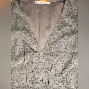 Chic and flattering Abercrombie & Fitch blouse in a rich olive / forest green. Features a feminine V-neckline, soft sheer dotted fabric, and a smocked waist that cinches perfectly for a snatched silhouette. Finished with long puff sleeves and subtle ruffle hem for an elevated, romantic look.