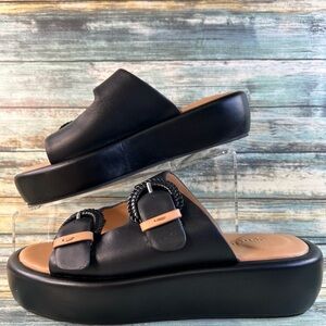 Gentle Souls Womens Theresa Platform Slide Sandal Size 8 Black Leather Slip On.