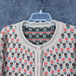 Retro Style Beige Floral Grandma Cardigan Colorful Cozy Women’s XL Cottagecore