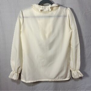 This elegant cream blouse features delicate ruffles for a sophisticated look. Perfect for both casual and formal occasions.