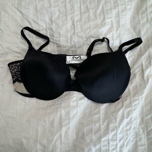 Soft and supportive with a touch of elegance—this Maidenform bra in classic black features smooth cups and delicate lace detailing along the sides for a feminine finish. Designed for everyday wear with just the right amount of lift and comfort. A staple piece for any lingerie drawer, offering both function and subtle beauty. In great pre-loved condition, size 34B.