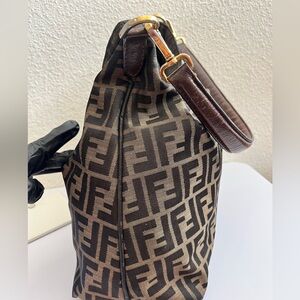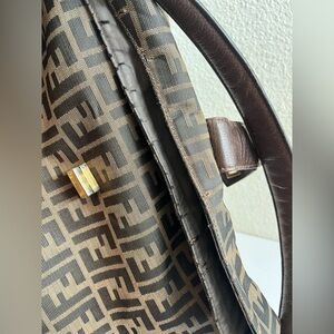Exterior shows wear, creasing and wear on canvas, cracks and scratches on handle and closure, Fades and and hardwares, Roughness on corner edges.
