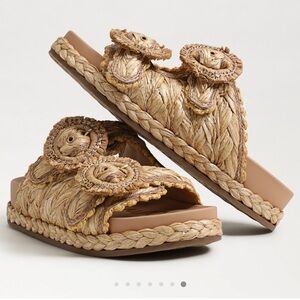 Color: Beechwood Multi Raffia A boho classic silhouette gets even more shabby chic with mixed materials and sunburst buckles. Give your go-to LBD a cool girl–approved twist.