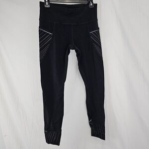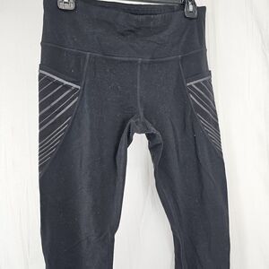 Athleta Shimmer Stripe Relay 2.0 Tights Black Pockets 870931 Womens Size Medium