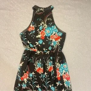 As U Wish Floral Maxi Dress Sleeveless Halter Size Medium