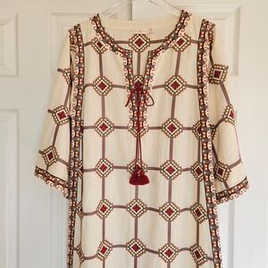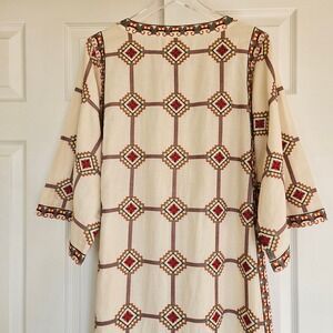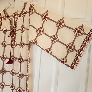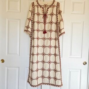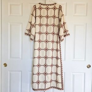 TORY BURCH Embroidered Caftan Dress Geo Print Size Small