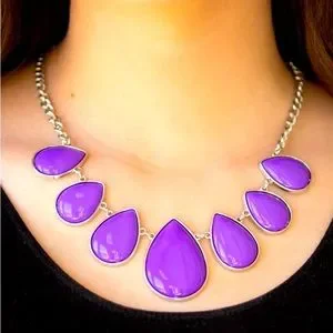 🆕 Drop Zone Purple Necklace and Earrings. NWT. Gradually increasing in size near the center, shiny purple teardrop beaded frames link below the collar for a vivacious look. Features an adjustable clasp closure.