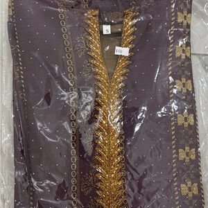 Elegant purple kurta with intricate gold embroidery. Perfect for festive occasions.