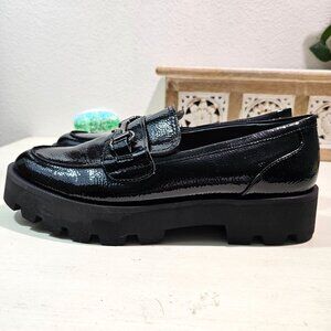 FRANCO SARTO Womens Sz 10M Bergamot Black Patent Lug Sole Platform Loafer Shoes