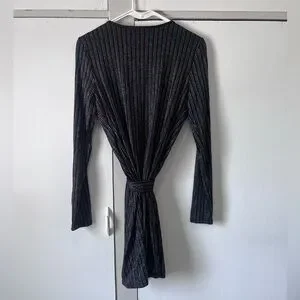 NWT idem ditto Black Wrap Dress Metallic Thread Size M