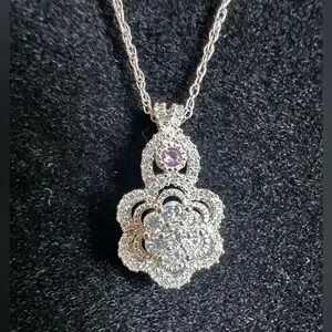 This 14k solid white gold pendant with natural diamonds and one pink sapphire from JCPenney is beautiful 🩷