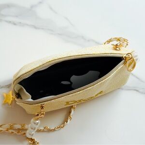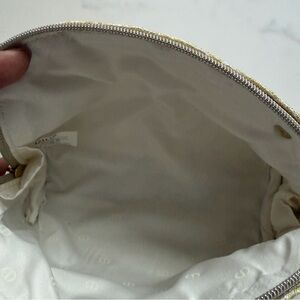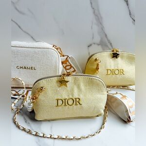 Elevate your look with this elegant new Dior Beauté Cream/Gold Metallic Pouch, finished with a soft shimmer and sleek gold-tone hardware. Originally a Dior Beauté VIP gift, this piece has been thoughtfully reworked with a White/Gold metallic chain strap, transforming it into a versatile crossbody bag or a chic cosmetic pouch.