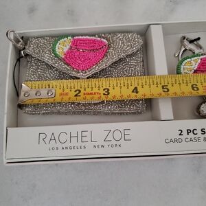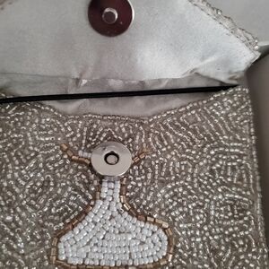 NWT and comes in original gift box. Cute and ready to be used. Silver beaded card wallet with snap button, satin interior, and side clasp. Matching key purse fob key chain, also beaded with smooth fabric on back