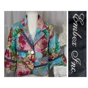 Embex Inc. Vintage Multicolor Floral Embroidered Boho Jacket L