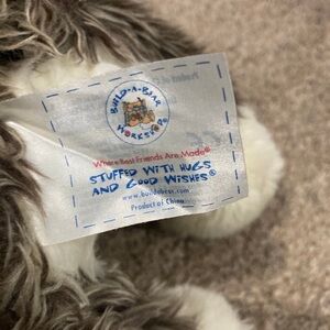 Charming Build-A-Bear plush with soft gray and white fur. Ideal for snuggling.