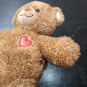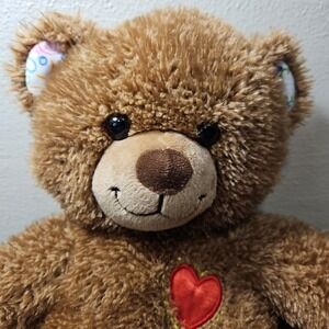 This is a 16-inch Build-A-Bear Workshop plush bear in brown color, featuring doodle paws and a red heart. Manufactured in 2022, it is machine washable and suitable for kids. This collector bear is part of the Love & Hearts theme and is surface washable. It comes without packaging and weighs 1 lb. Perfect for all occasions, this bear is a current original creation from Build-A-Bear Workshop.
