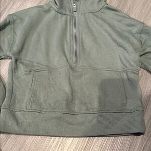 Comfortable sage green pullover with a stylish quarter-zip design. Perfect for casual wear.