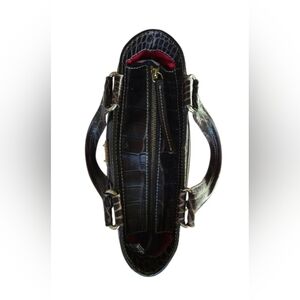 Elegant croc-embossed leather. Deep chocolate hue. Perfect for any occasion.
