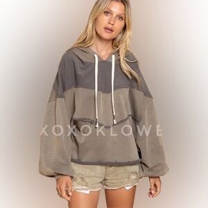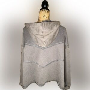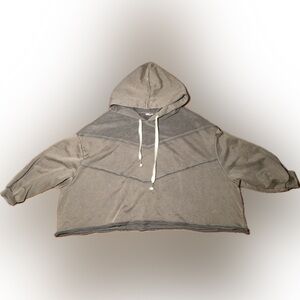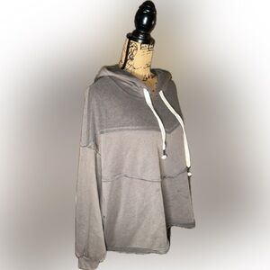 POL Anthropologie Oversized Baggy Gray Olive Textured Casual Hoodie Sweatshirt S