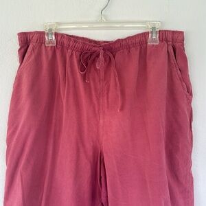 Vintage Jennifer Moore pink 100% cotton cropped length wide leg clamdigger style casual drawstring waist pocket pants size XL. Shows some signs of wear but overall in good used/vintage condition.