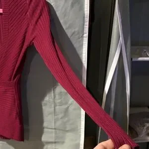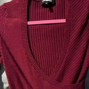Express W Sz XS Burgundy Criss Cross-Neck Sweater EUC very fitting. FIRM 10