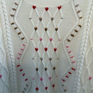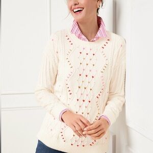 Talbots small whipstitch hearts cable knit sweater cozy knit romantic heart pattern sweater long sleeve pullover casual chic soft textured knit winter layering feminine style