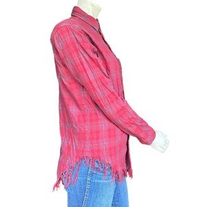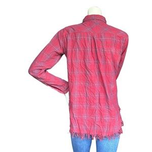 Current/Elliott Red Plaid Button Down Flannel Shirt with Fringe Raw Trim Size 0