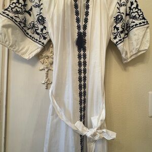 Alex Marie white casual dress with Blue Embroidery