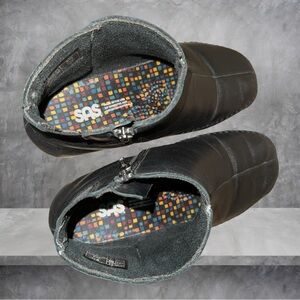Comfort-first SAS (San Antonio Shoemakers) ankle booties crafted from genuine leather and designed for superior support. These feature a classic black finish, easy side-zip closure, and SAS’s signature cushioned footbed for all-day wear.