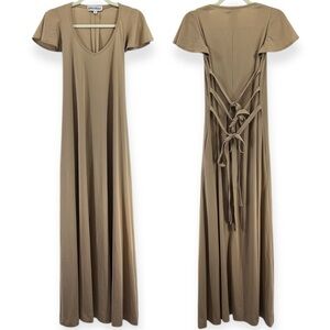 Vintage John Kloss Tan Short Sleeve V-Neck Tie Waist Maxi Dress Size 8