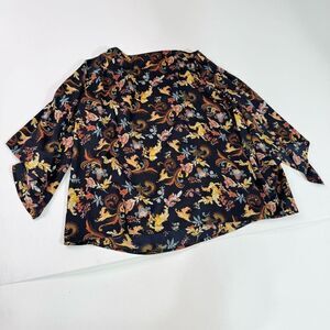 Motto Top Womens 2X Black Floral Pattern Kimono Sleeve Boat Neck Blouse Mature
