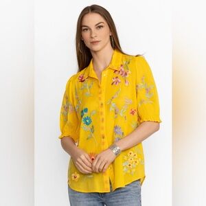 Johnny Was Evangeline Smocked Lisbon Shirt M