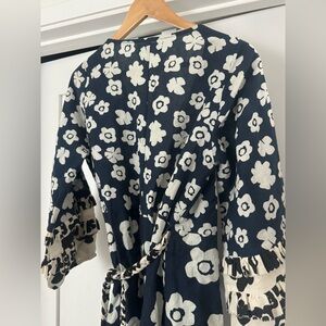 Apiece Apart Beja Ruffle Dress Wrap Floral Size 4 Blue
