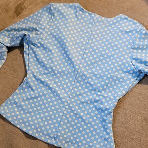 Pinup Couture Blue & Yellow Polka-dot Blouse Rare