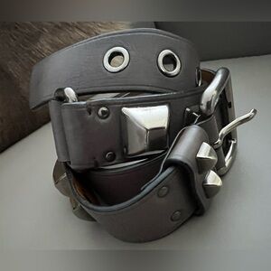 PRADA Studded Leather Belt – Silver Buckle