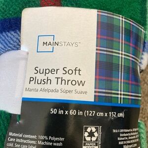 Soft and colorful throw with a plaid pattern. Features green, blue, and red hues. Ideal for cozying up in style.