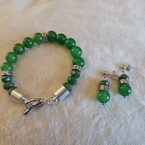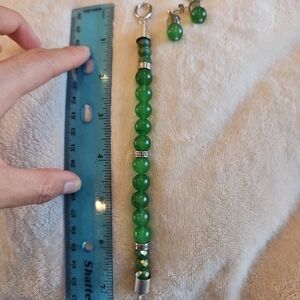 Green Beaded Bracelet with Silver Accents