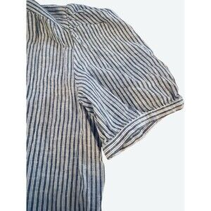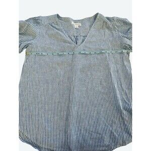 Treasure & Bond Blue White Striped Blouse Medium Split Neck Short Sleeve Top