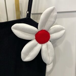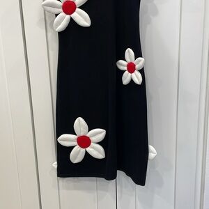 Tyler Mcgillivary Daisy mini dress with adjustable spaghetti straps, black knit with white and red 3D puff flowers. 65% cotton, 35% poly blend fabric. Dry clean recommended. Size Small. Good pre owned condition. *Please note: there is a light scent of perfume* Please see photos, measurements are for reference only.